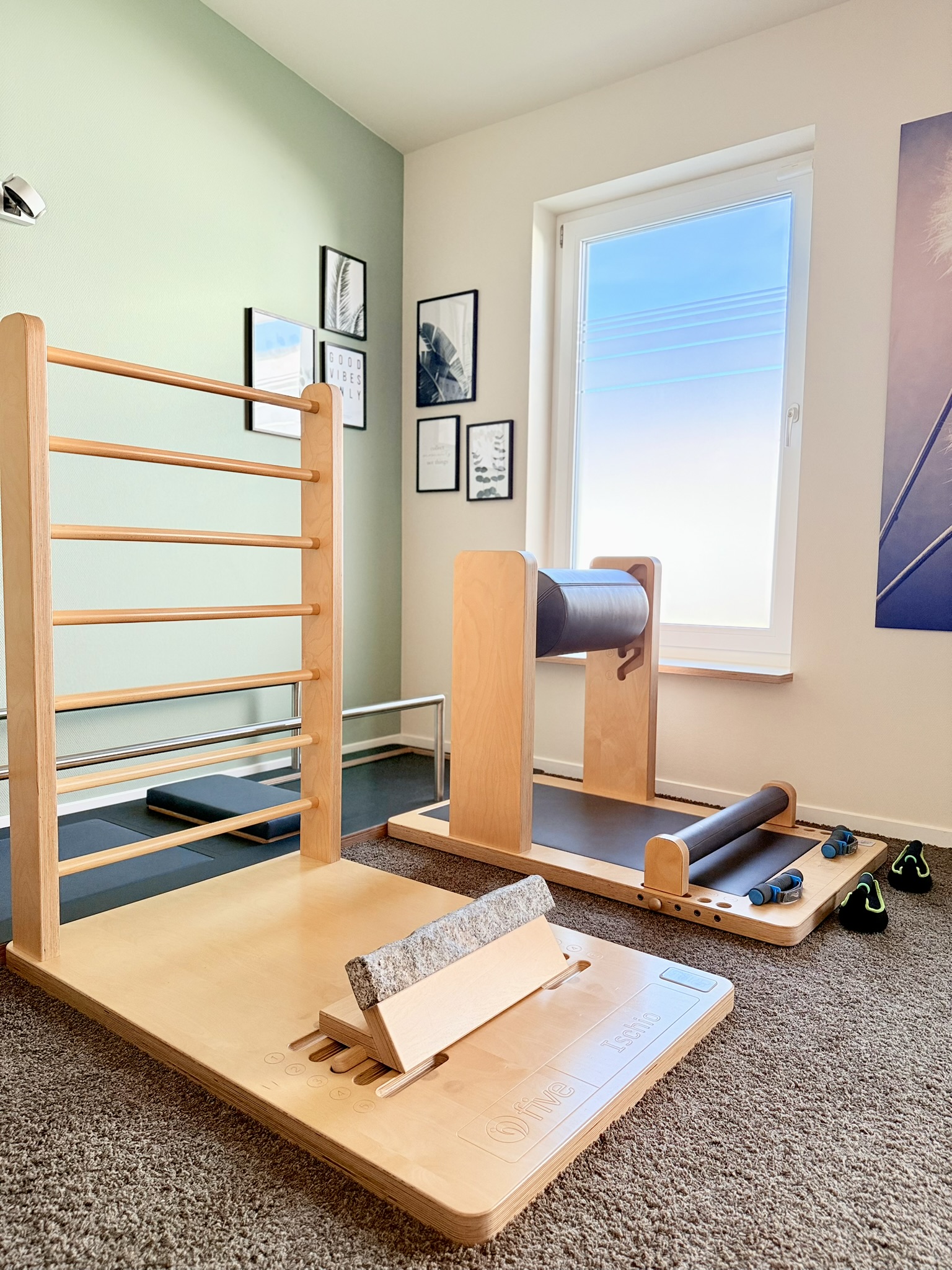 Die Praxisräume bieten vielfältige Möglichkeiten, um sich mit den Patienten und Kunden „auseinanderzusetzen“. Neben 8 Behandlungsräumen haben wir einen großen Trainingsraum mit modernen Kraft- und Ausdauergeräten kombiniert mit dem Five-Konzept für Faszien- und Beweglichkeitstraining. Zusätzlich steht ein Multifunktionsraum mit diversen Kleingeräten zur Verfügung.