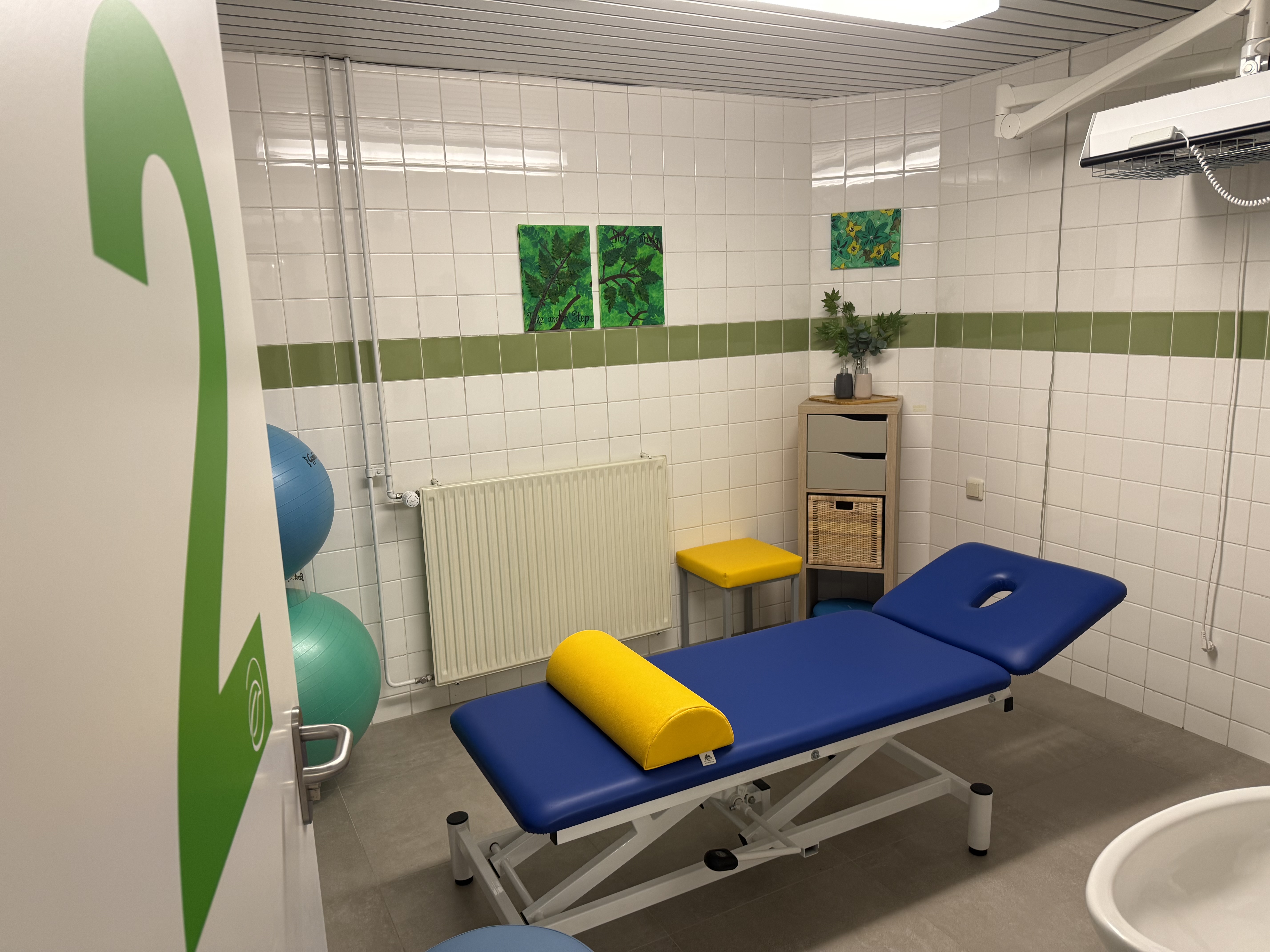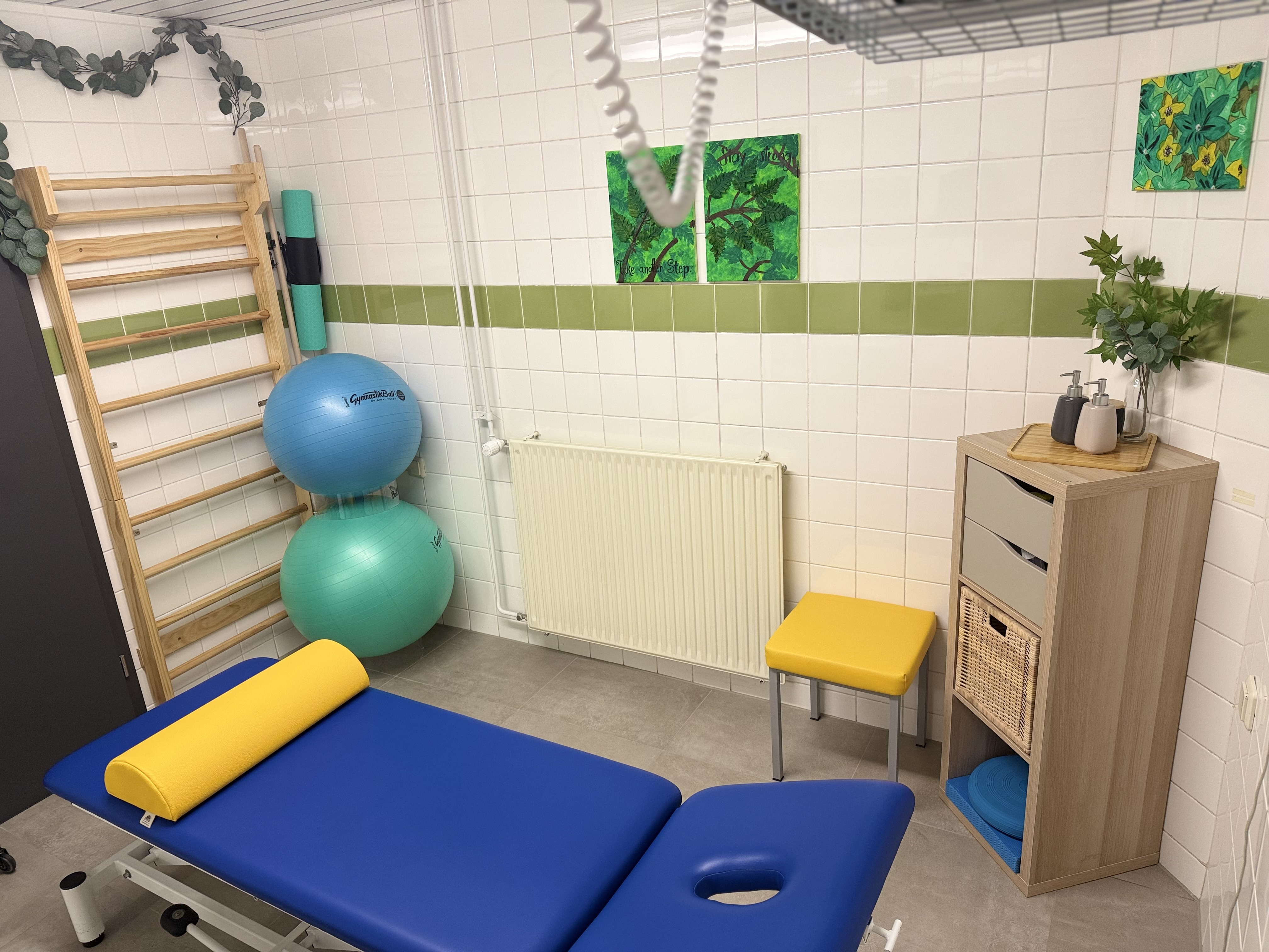 Im angrenzenden Gymnastikraum können wir intensive Gangschulungen durchführen und Gruppentherapien halten.